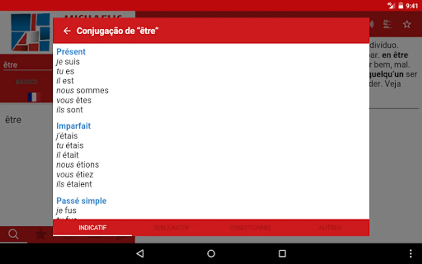 • complete conjugation of all Portuguese and French verbs in the dictionary;