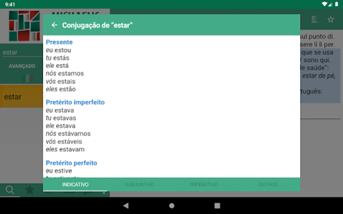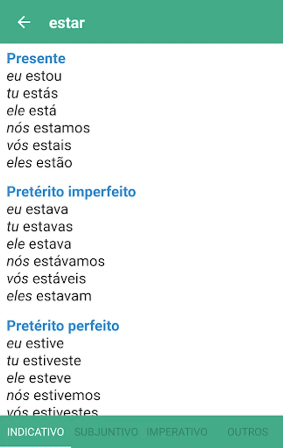 • complete conjugation of all the verbs of the Portuguese language dictionary;