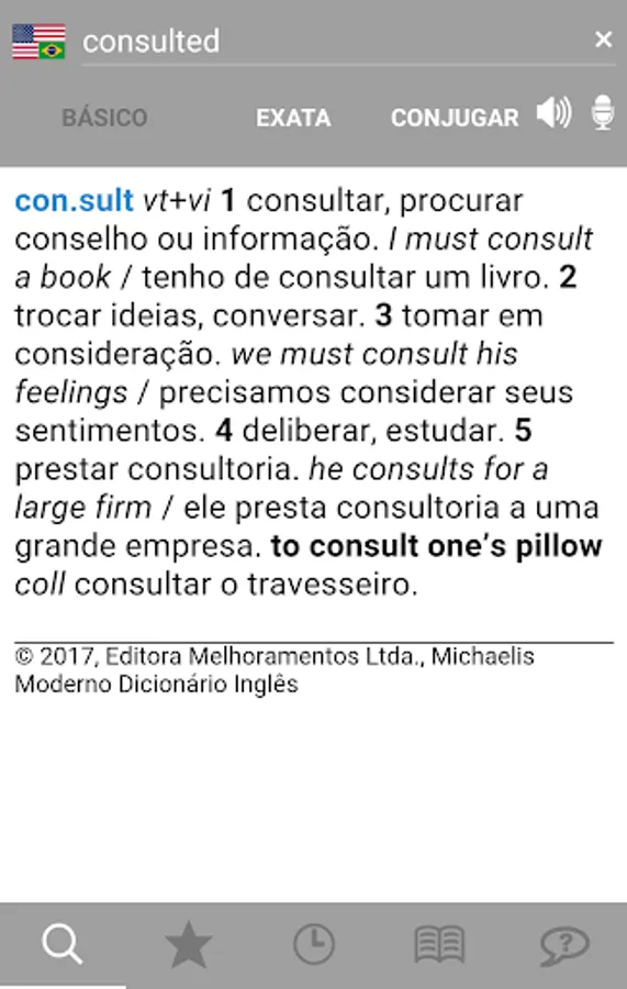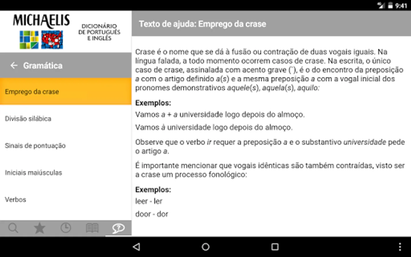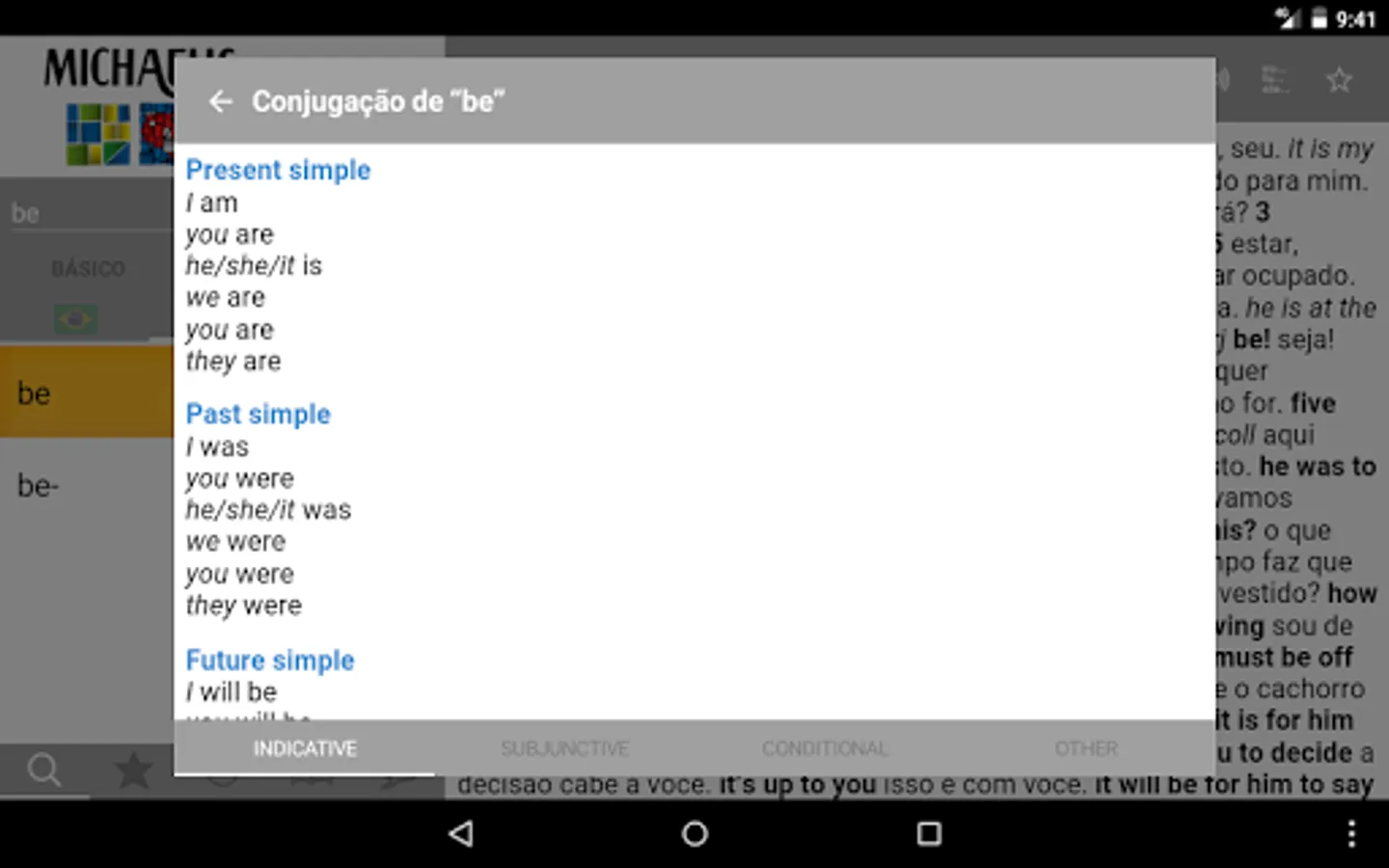 Keep in one application the two dictionaries "offline" most complete of Portuguese and English / Portuguese: the "Michaelis Brazilian Dictionary of the Portuguese Language" and "Michaelis Modern English Dictionary." Together, these dictionaries have over 1 million definitions, translations, expressions and examples.