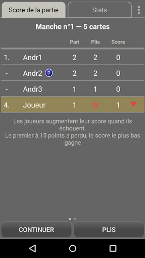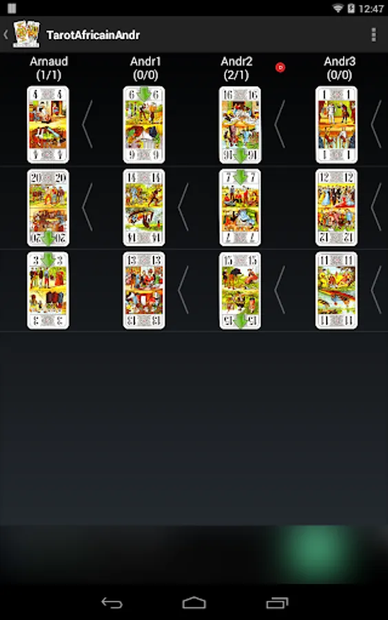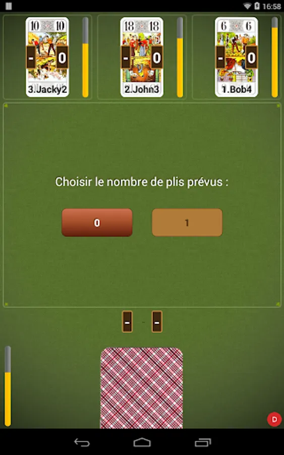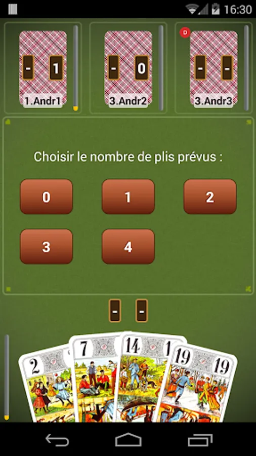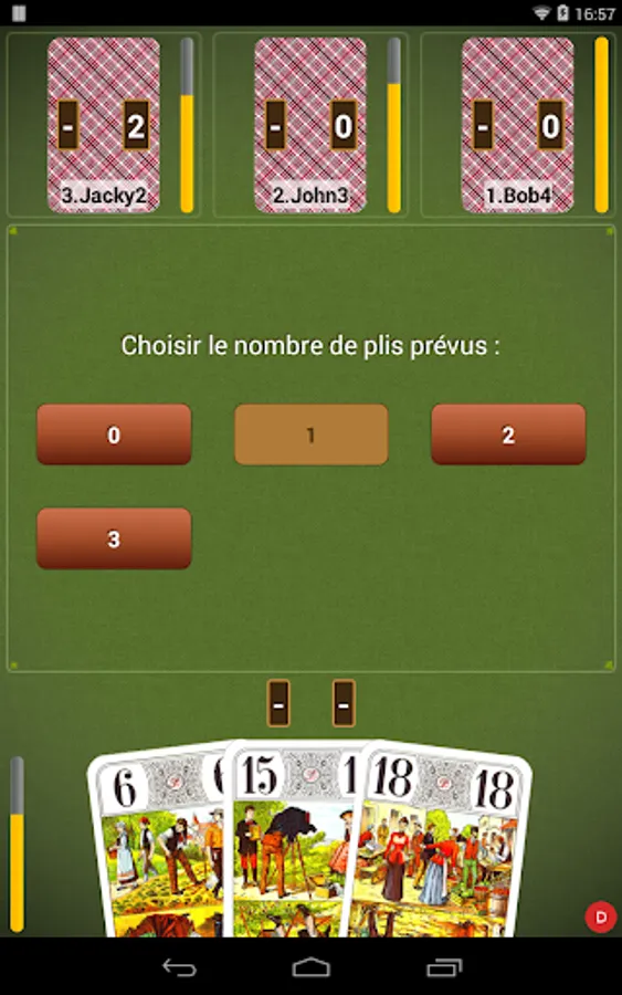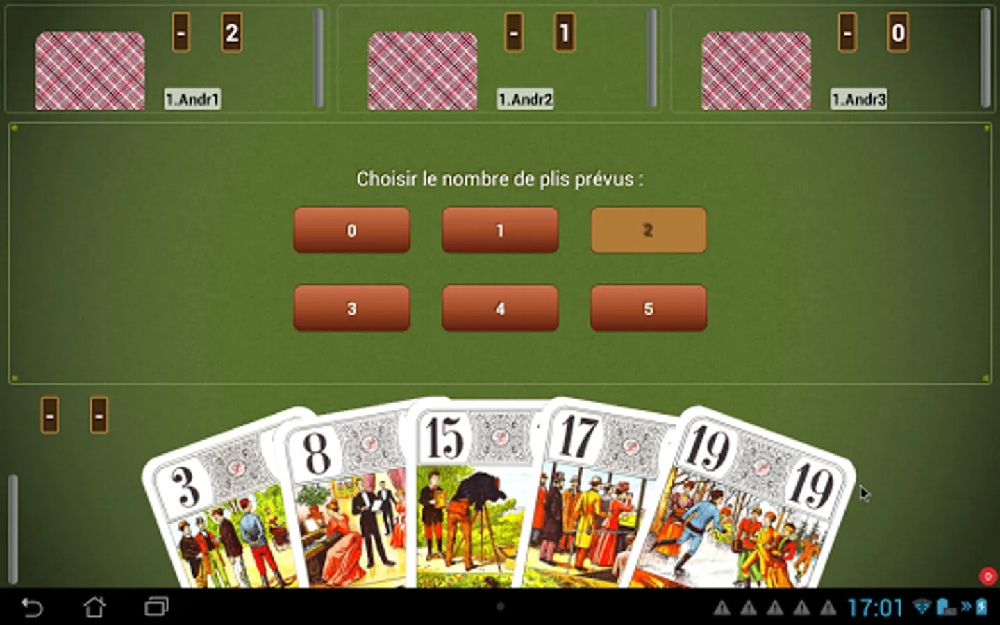 In the playing phase, you will try to win the number of tricks you previously bet. Rules are easy to understand : You can play the card you want and a card is as strong as its number (21 > 20 >19 > … > 1)