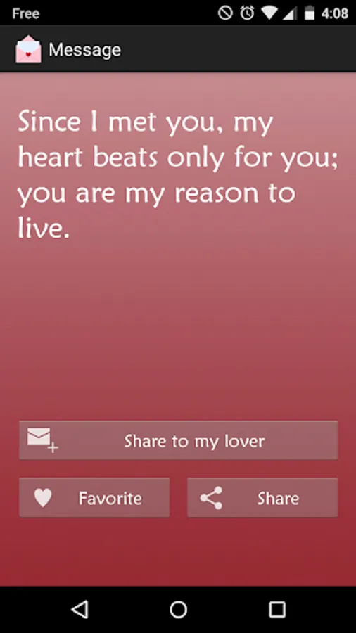 Simply launch the application, select the phrase you want to send to your lover and send it. Sentences are available by categories and you can keep your favorite phrases.