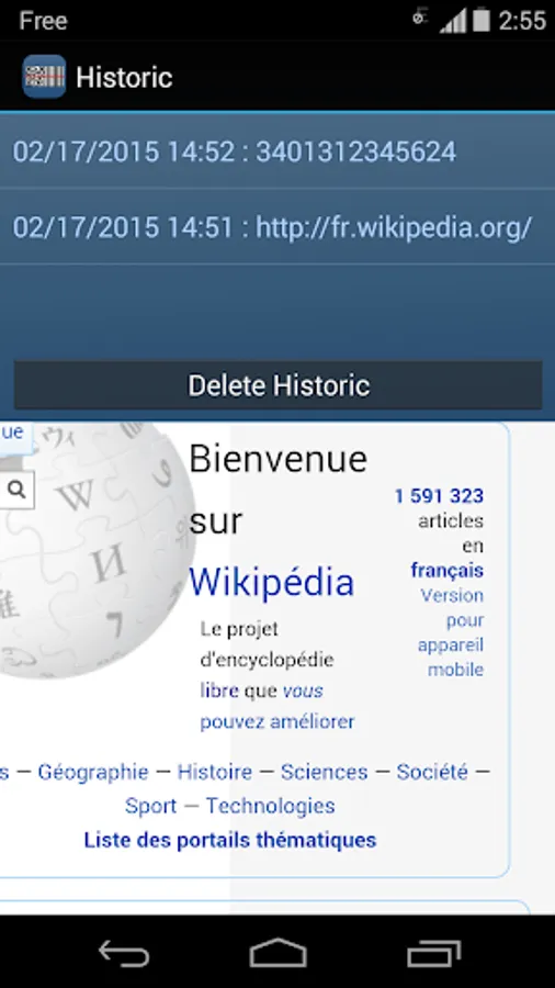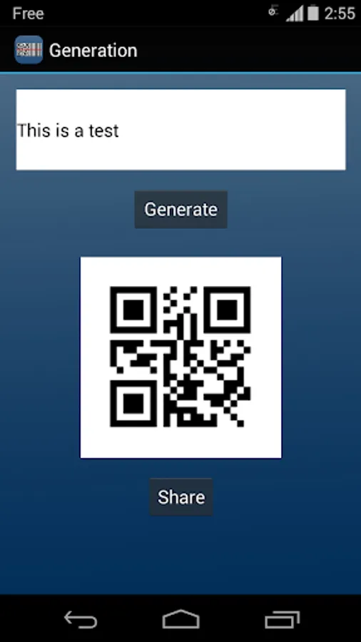 Just launch the application and then you can read any QR code or barcode. The application also provides the ability to generate a QR code from a link or text and share it to all your contacts. Finally a historic allow you to keep all scanned codes.