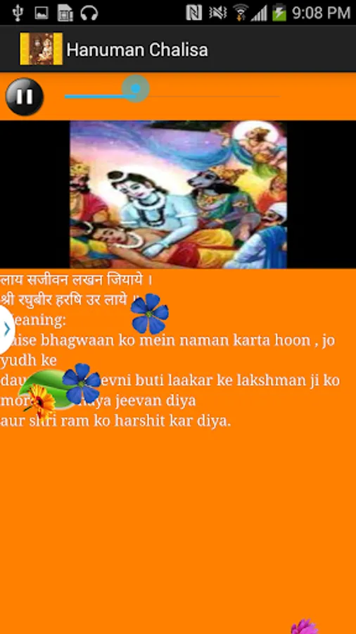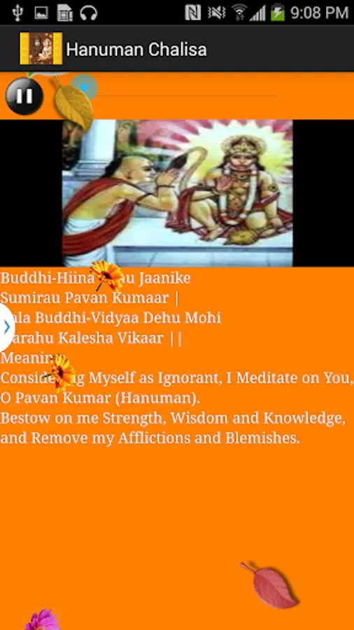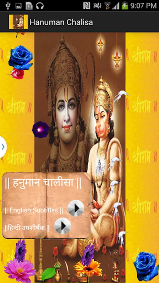 1. Hanuman chalisa with video and its subtitles in English along with meaning.