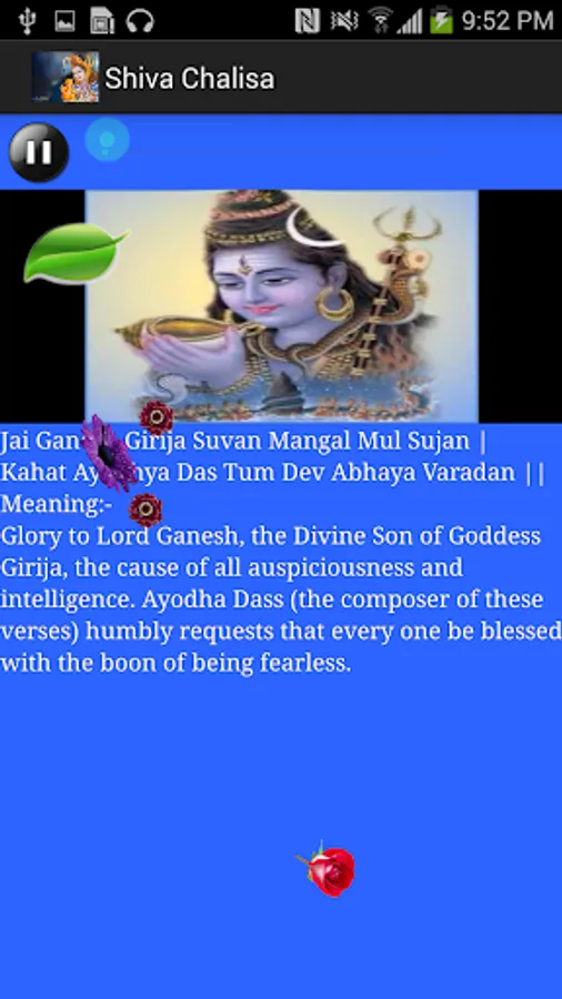 4. Very simple menu to start chalisa.