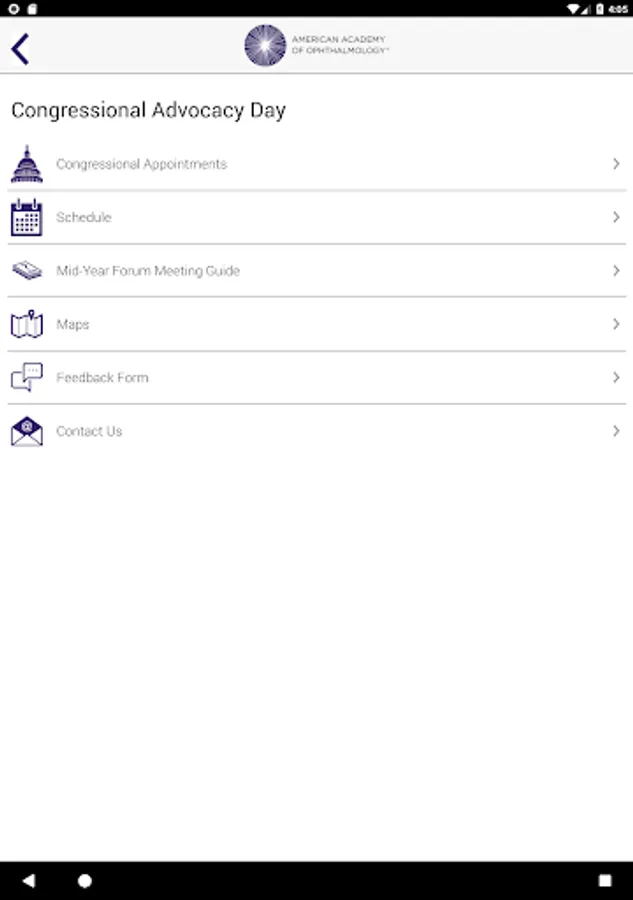 The American Academy of Ophthalmology’s advocacy application gives its users access to the tools and information needed to successfully speak on behalf of ophthalmology on Capitol Hill or at home.