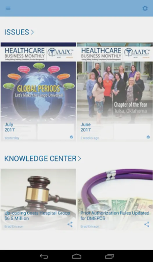 The official AAPC Content app allows members to access Healthcare Business Monthly and the Knowledge Center in an easy-to-use app.