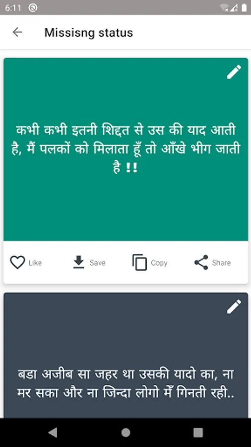 🔶 Add Hindi Shayari to favorite Shayari collections.