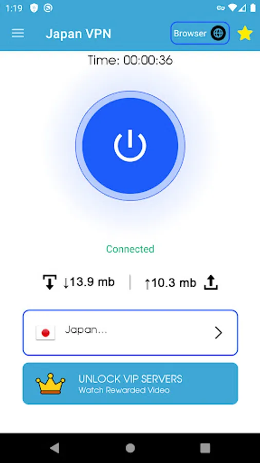 - One touch to connect to the Japan VPN proxy server and enjoy safe browsing.
