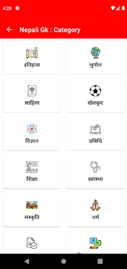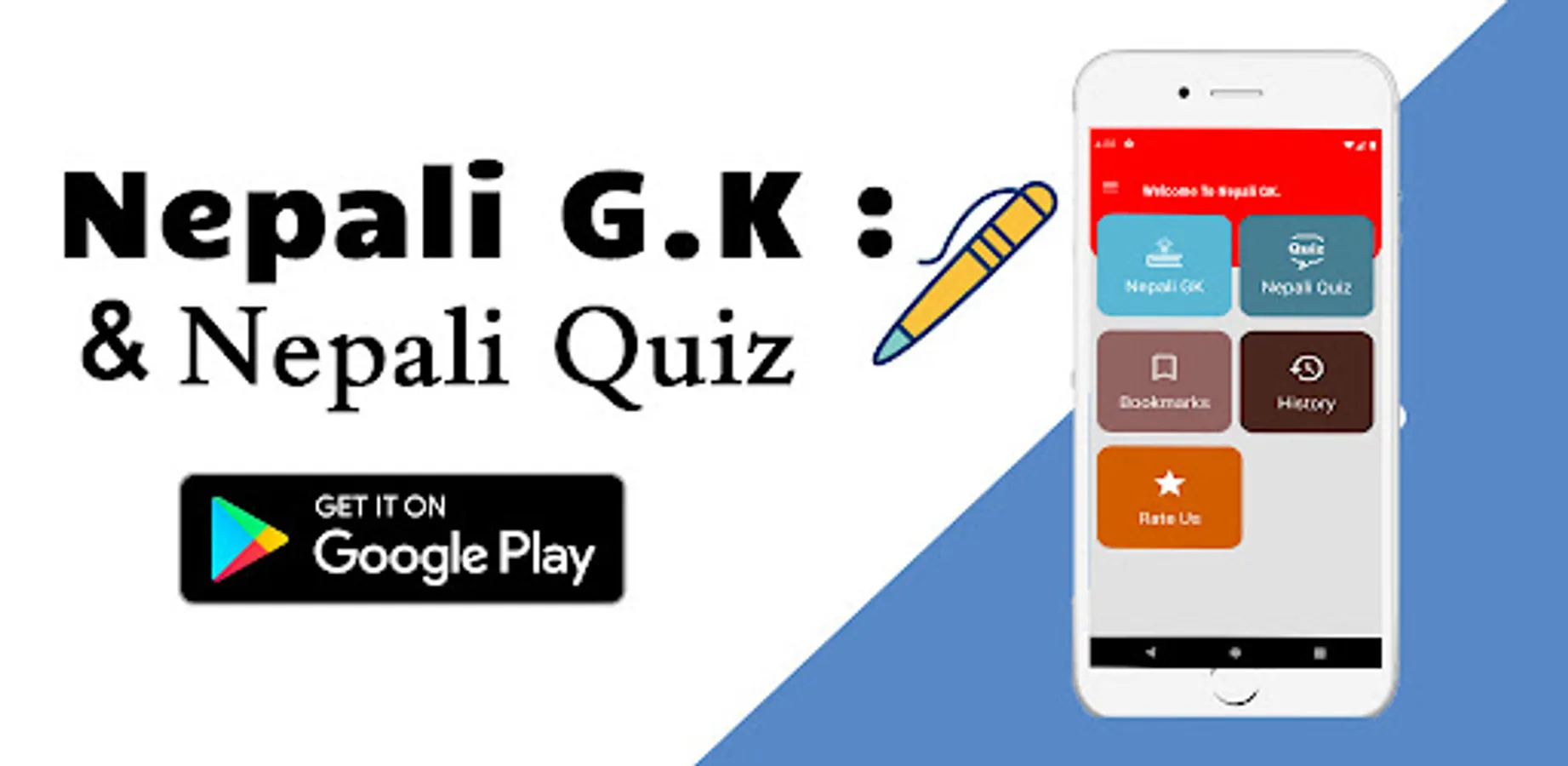 Nepali G.K: Nepali Samanya Gyan (नेपाली सामान्य ज्ञान)is a very useful app for Nepali students and people of Nepal of all age groups which contain diverse knowledge of each field. In this Nepali GK: Nepali Quiz app general knowledge of world history, history of Nepal, world geography, geography of Nepal, art, literature, language, science, law, education, sports, health, religion, culture, communication, film, dance, music, society, agriculture, the constitution of Nepal, Various areas such as international organizations, etc. have been placed.