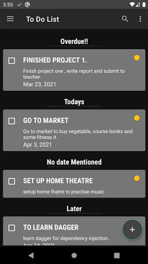 TODO: Todo List And Task List. Application is all about managing your day by organizing todo list and task list.