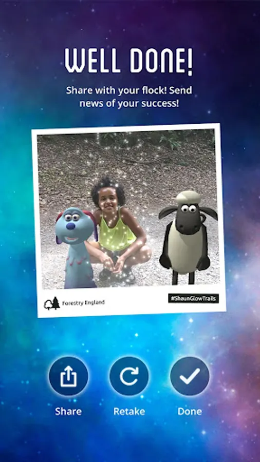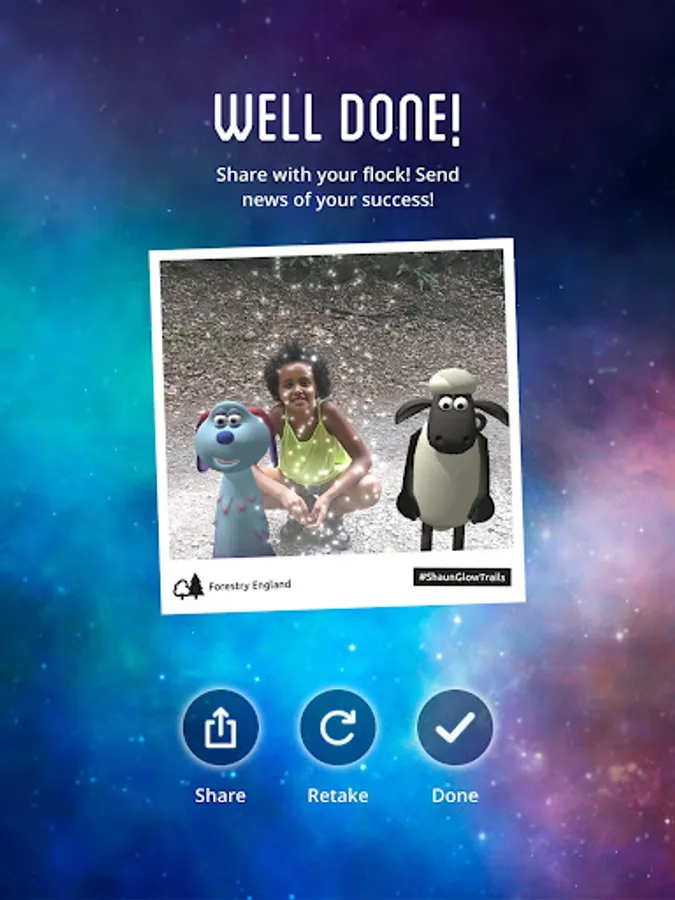 Join Shaun and his new friend Lu-La at the Forestry England centres and follow our Farmageddon ‘Glow Trail’. Find the clues, reveal the puzzles and complete physical challenges to help Lu-La charge her communicator and get back home! Unlock an Augmented Reality experience and pose with Shaun and Lu-La for a picture in the forest.