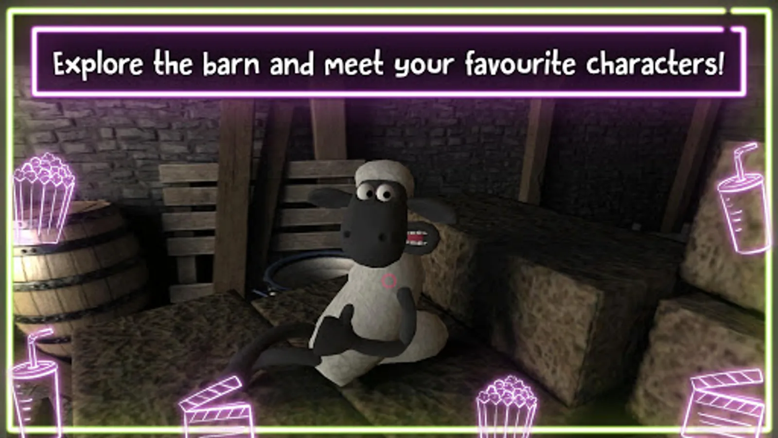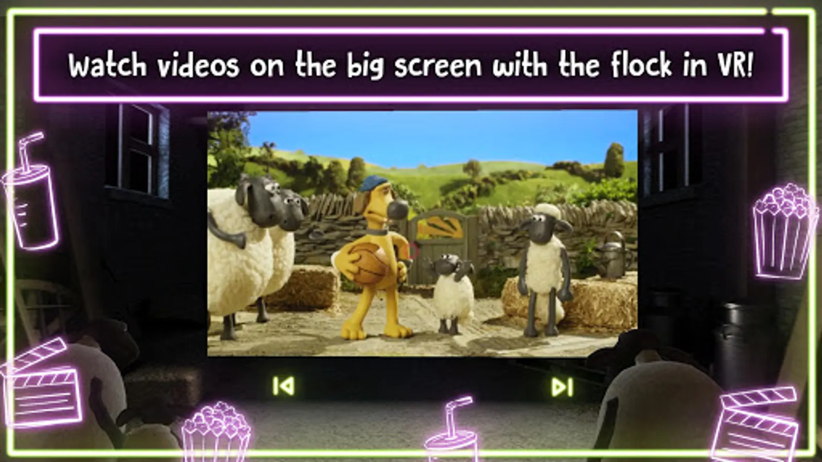 Join Shaun, Shirley, Timmy and the rest of the flock in the barn to watch fun videos on the big screen in VR!