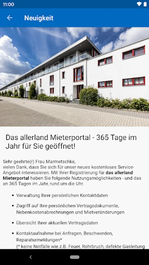 The tenant app Your direct line to allerland Immobilien GmbH.