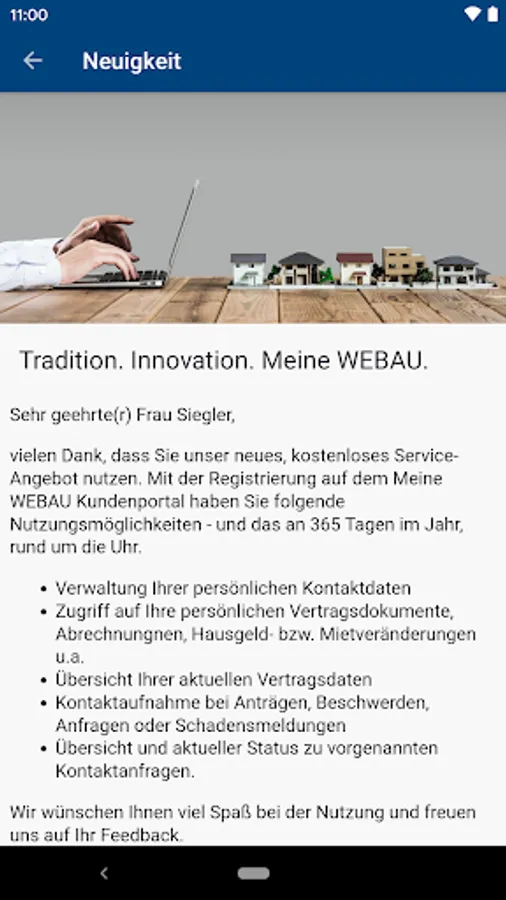 “Meine WEBAU” gives you the opportunity to access and download all of your documents.