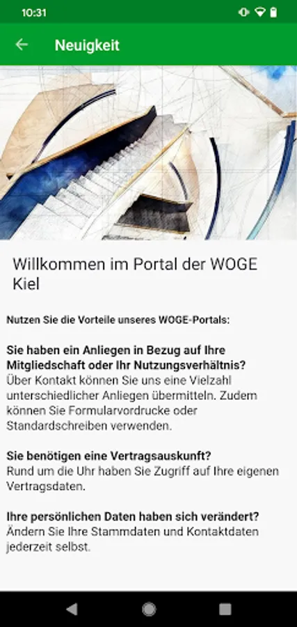 With the free app on the WOGE Wohnungs-Genossenschaft Kiel eG portal, you can access a lot of useful information and services around the clock and from anywhere.