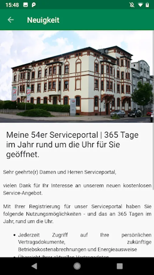 With the free 54er2go app, tenants and members of the Wohnungsbaugenossenschaft Stadt Magdeburg from 1954 eG can call on services of the cooperative around the clock. Whether documents for the tenant contract or utility bill - everything online anytime, anywhere. You will also get an overview of your current contracts including rent and balance. You have to report a damage to the object or in the apartment - no problem without waiting and additional ways this is possible through the app. You can also update your contact details or obtain permits and submit your own documents.