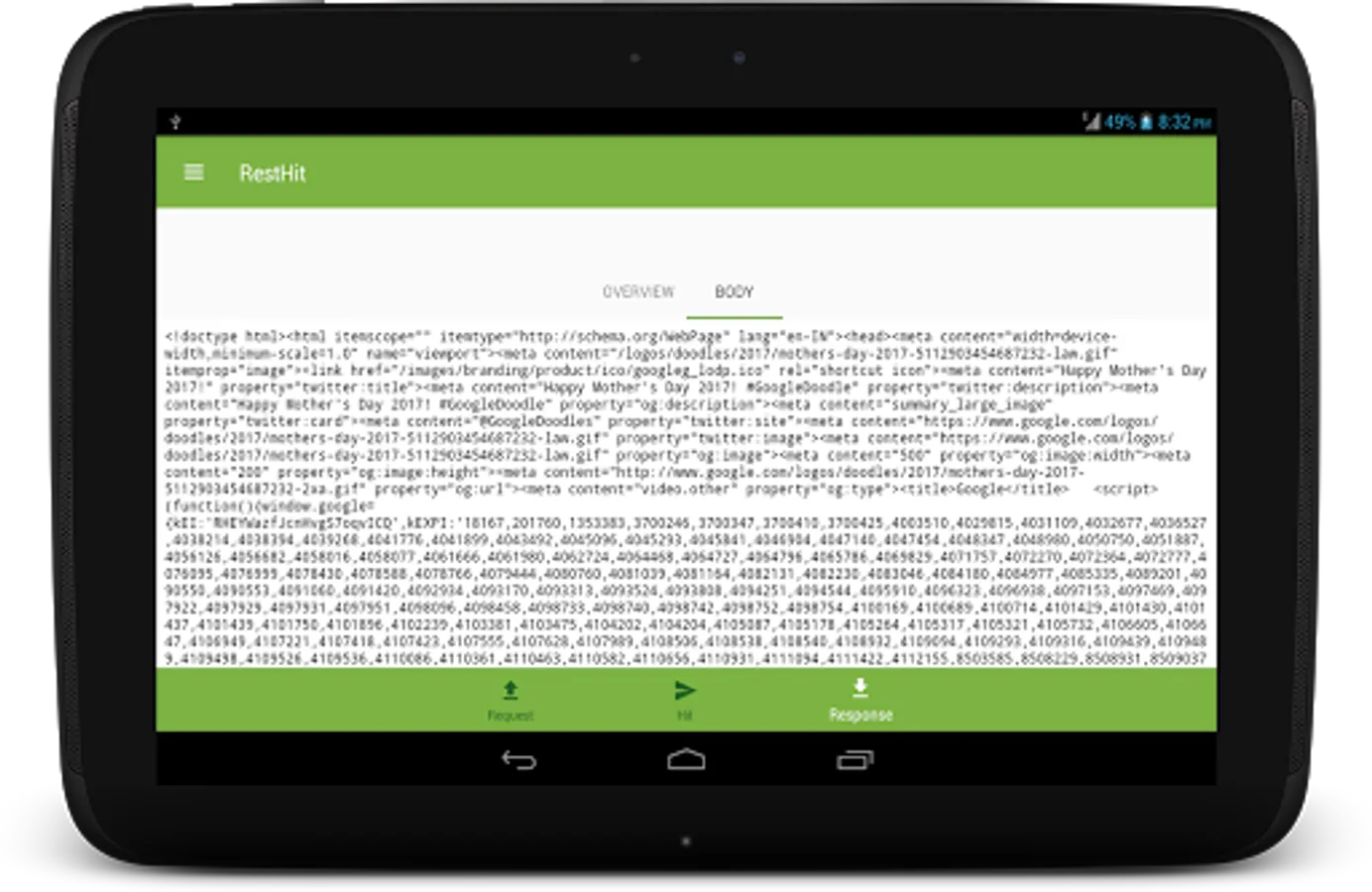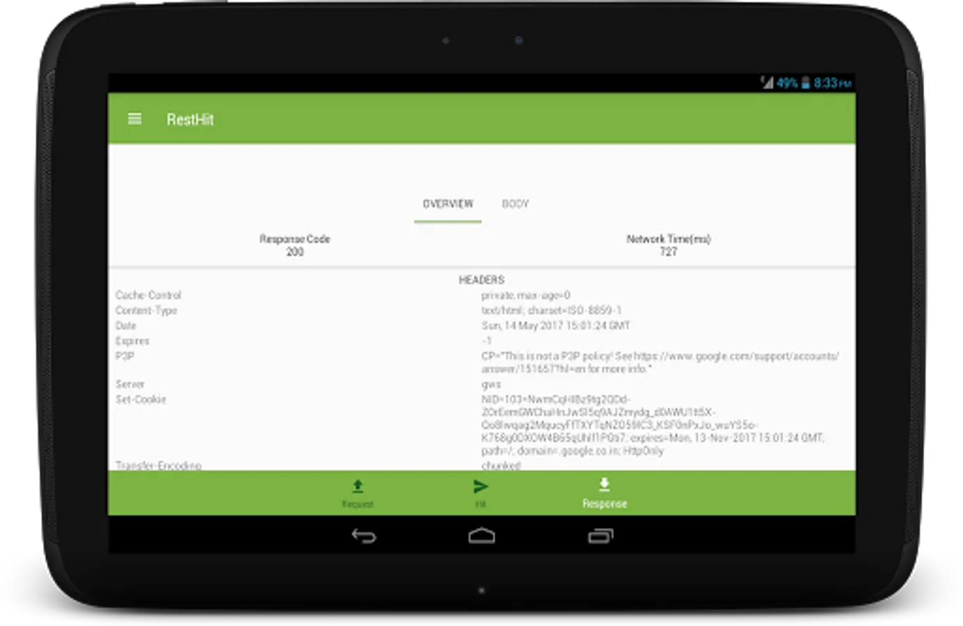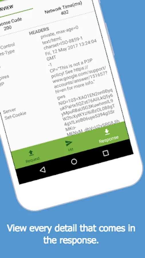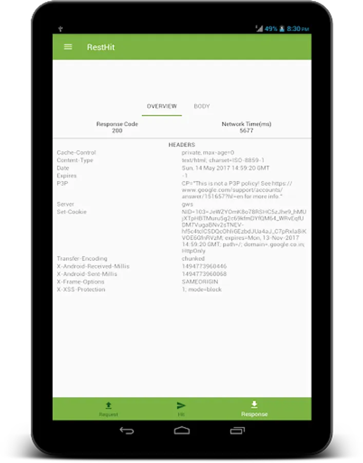 The server response is shown in a beautiful fashion with response headers, status code and network time on "Overall" window and the response body on another window so that you as a developer could focus on what matters to you.