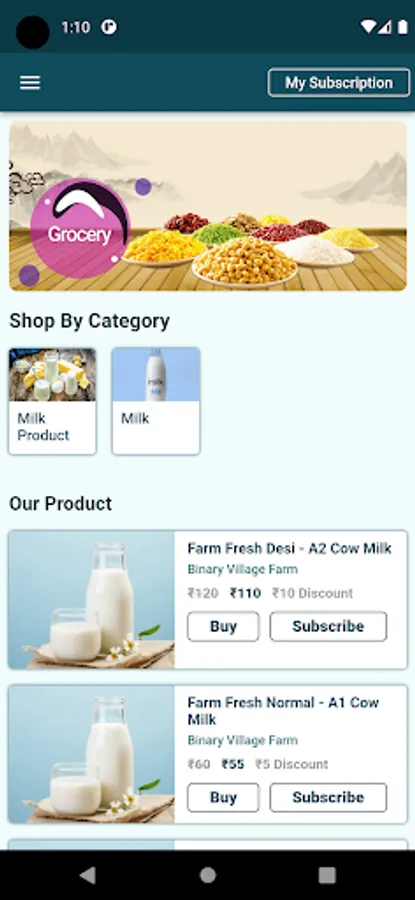 Binary village farm app is a medium to provide farm fresh food product to the urban consumer . This App help urban consumer to buy and subscribed for the product listed on the app . We are a group of small farmer whose aim is to provide good and fresh farm product to Urban Consumer.