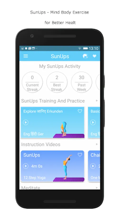 The app provides a training module for those who are unaware of the steps involved in Surya Namaskar. It also teaches you the Mantra to be chanted with each pose along with its meaning and the chakra energized. Follow with the app till you are comfortable doing SunUps on your own.