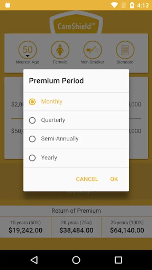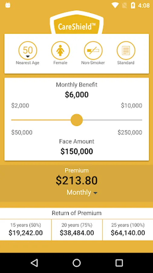 Quickly look up premium rates for CareShield from Minnesota Life. Select your client's nearest age, gender, tobacco use, and standard/preferred rate, then set the desired benefit and instantly see the premium and return of premium values. For producer use only.