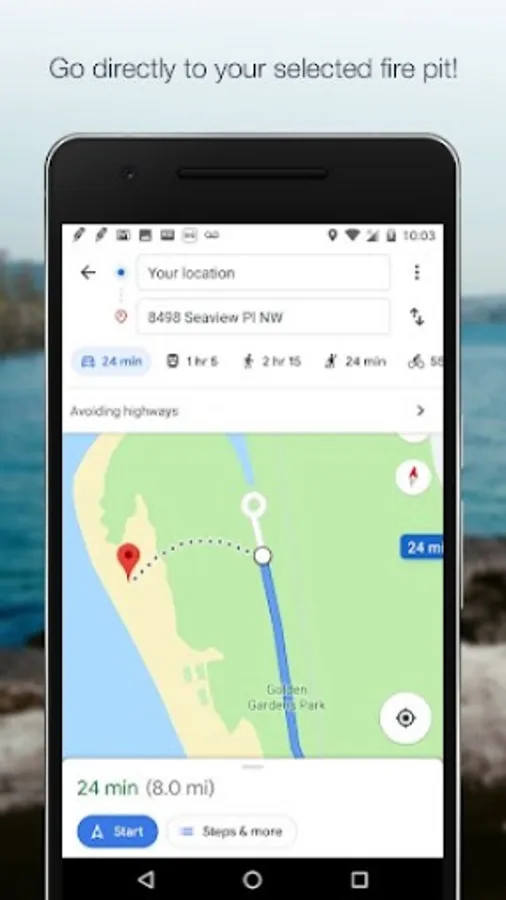 • Seattle FPL – Fire Pit Locator Once Google maps is selected you can choose which mode of transportation suits you, like car, bus, walk etc...