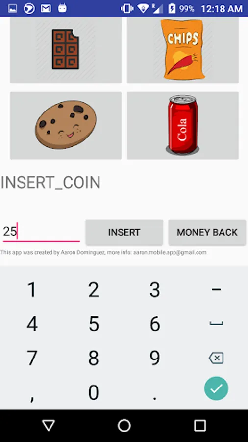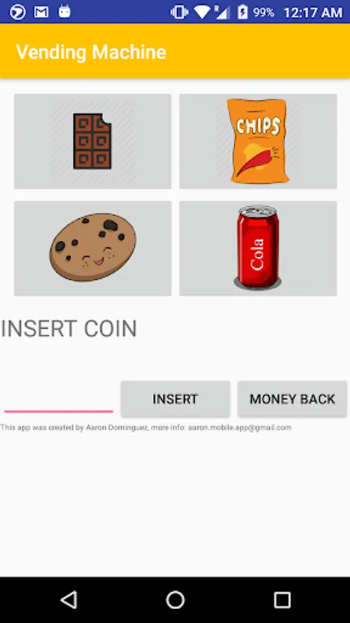 My Vending Machine App emulates a real vending machine in your Android device and you can buy all the snacks you want without the inconveniences of real food like cost and fat.
