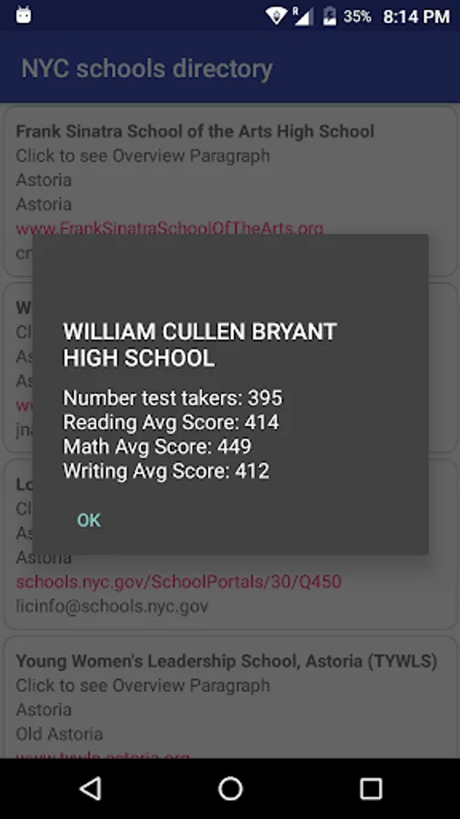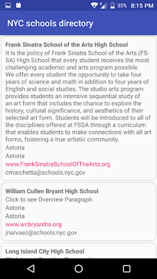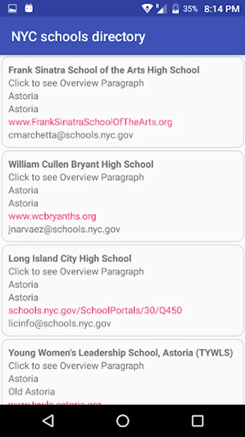 The New York City Schools Directory App allows you to see the information of schools in New York city.