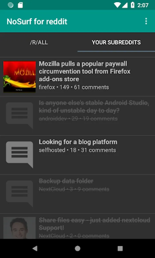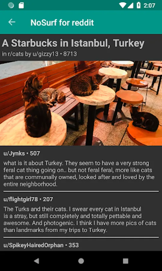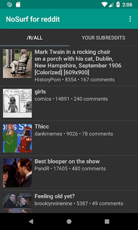 NoSurf for reddit is free, ad-free, libre, and privacy-centric, and always will be. It will not drain your battery, slow down your phone, or read your personal data in any way. No special permissions required.