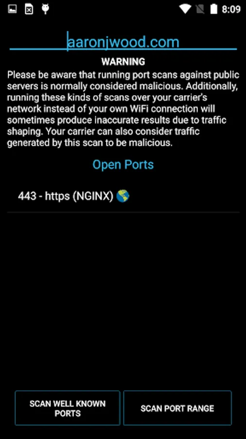You can now adjust the timeout for connections made to ports when performing either LAN or WAN scans. If you're scanning something over WAN (mobile network if you're using a cell phone) please be aware that scanning is best effort. Mobile carriers may detect that a real port scan is occurring and apply traffic shaping dynamically, or they may just start terminating the connections entirely. Additionally, if you happen to have poor signal or to not have 4G the quality of the network connection may be so poor that you'll need to have a fairly high timeout in order to tolerate latency spikes.