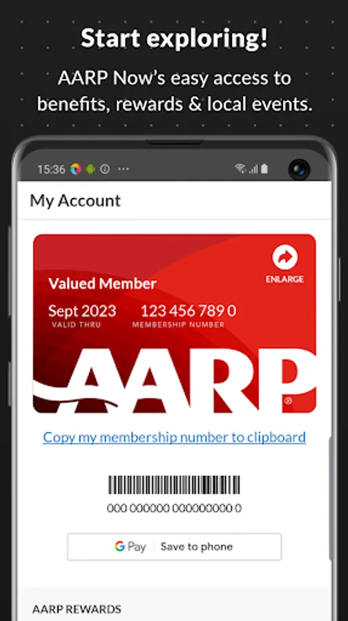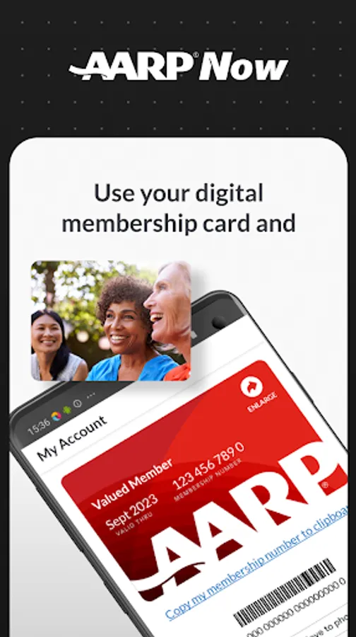 Access your digital membership card from day one by downloading AARP Now. As a member, you can access your digital card anytime from the My Account tab and join AARP or renew your membership with a tap. The app also gives you access to relevant news stories, local and online events, and nearby member benefits including limited time member offers. Also, join AARP Rewards and sync to the Health app or your favorite fitness tracker and start earning points today.