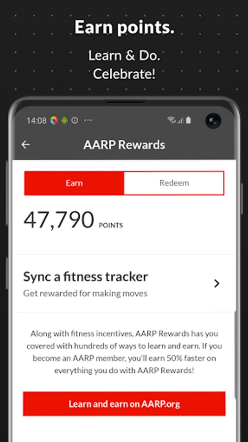 Get more from AARP Now with the AARP Rewards program! Earn Rewards points for downloading the app and visiting the app each day, plus synchronize your favorite fitness tracker or the Health app to get even more points for steps, swimming, and cycling.