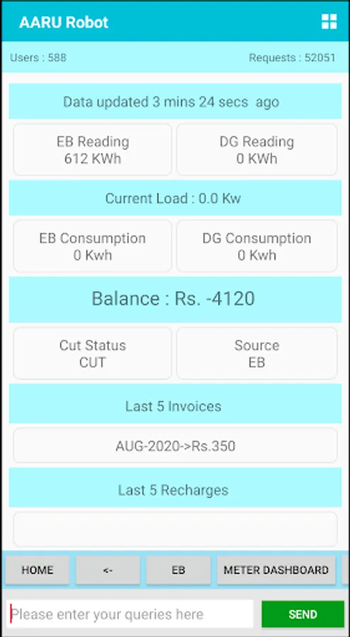 Intents supported : Balance, Current Source, EB and DG Reading and consumption, Cut status, invoice and recharge history, invoice download, online recharge etc.