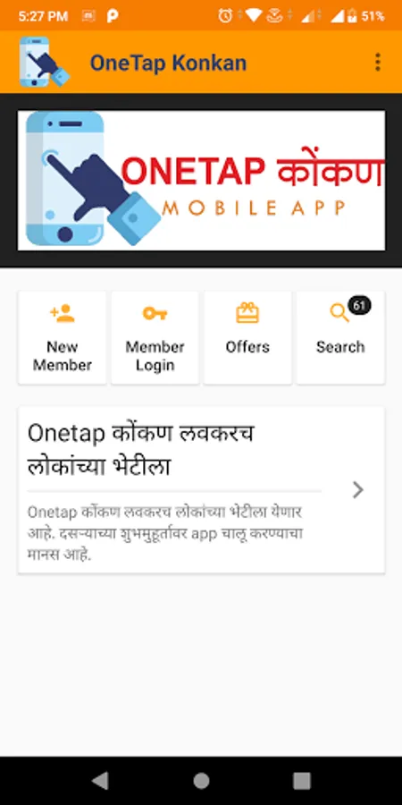 OneTap Konkan app creates and present business contact directory for Konkan region. It allows businesses to register on the platform and people can browse and get contact information and brief description about the businesses. It also allows businesses to share their offers.