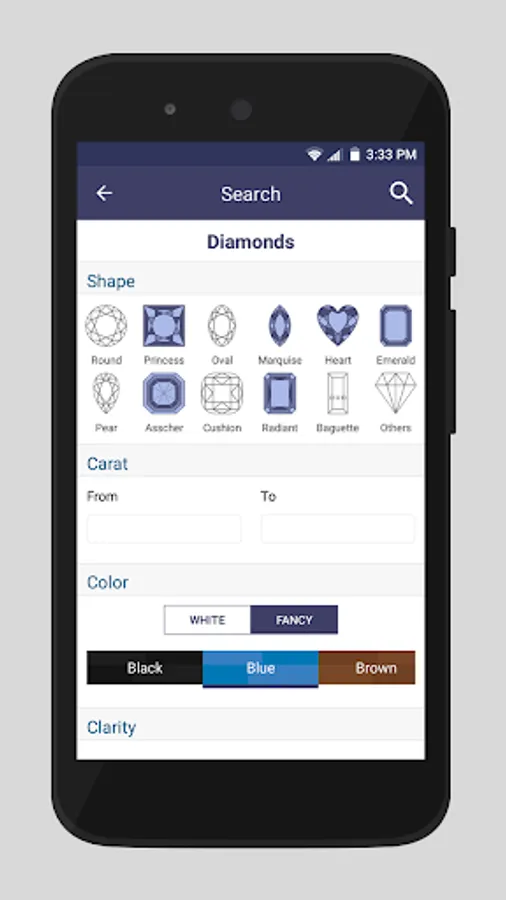 · Customize diamond search by color, cut, clarity, or other desired parameters