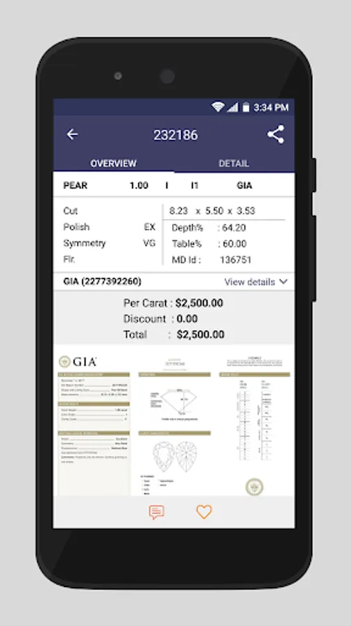 · Share diamond data directly to others via WhatsApp, email, messaging and more