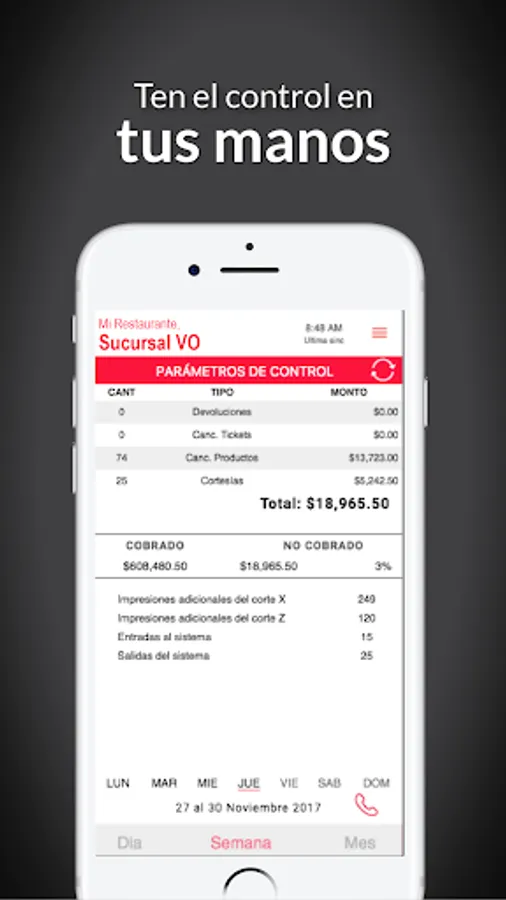 Simply select a business and the branch you want to see and will have a range up to 14 different reports ranging from the sale of the day until cancellations, returns and promotions that have been made.