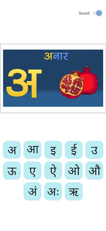• Use the App as a Flash Card for a playful learning for hindi varnmala.