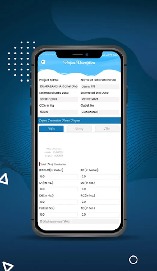 This app is specifically for Junior Engineer where they will log-in into the system and enter Pani Panchayat Specific Information which includes the following things: