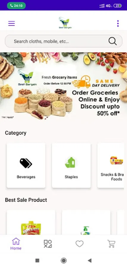 Shop online from a wide scope of items including fresh fruits & vegetables, beverages, groceries, snacks, home and family unit essentials, beauty & cleanliness and baby care. Request online on the Best Bargain App for your #1 staple brands – Ashirwad, Dabur, Horlicks, Nescafe, Dove, Dettol, Everest, Red Label, Lipton, Nutella, Patanjali, Saffola, Surf Excel, Vim.