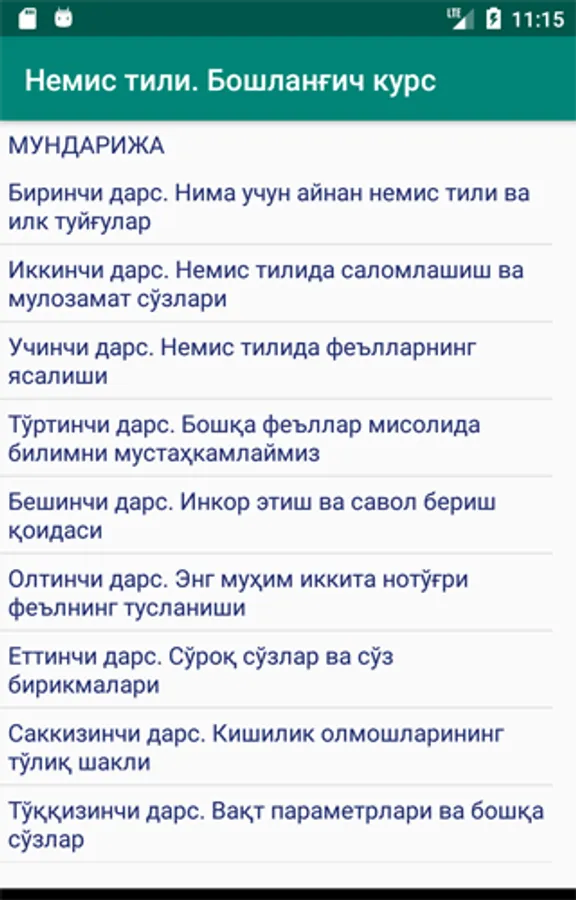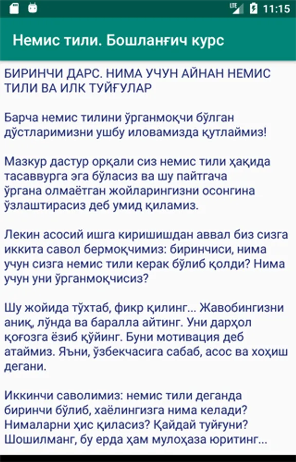 Etiboringiza ushbu mobile ilovasini taklif қilamiz. Unda nemis tiliga oid jouda ўp jiҳatlarni bilib olasiz. Boo Kitob Pullik. Zero, bepul narsaning қadri unchalik ҳam bўlmaydi.