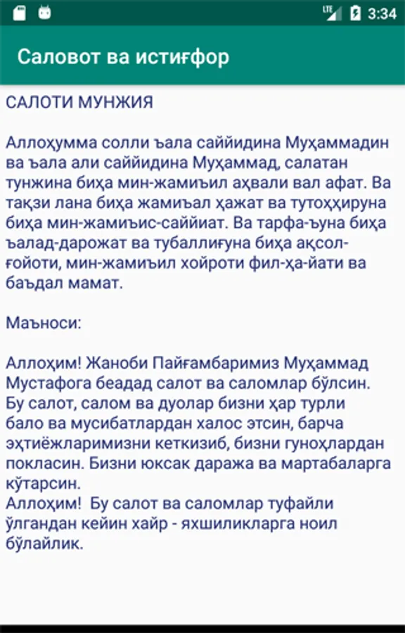 Salothi Mungia. Saloti Fatҳiyya. Sayyidul Istiғfor. Introduced sўқng ўқiladigan duolar.