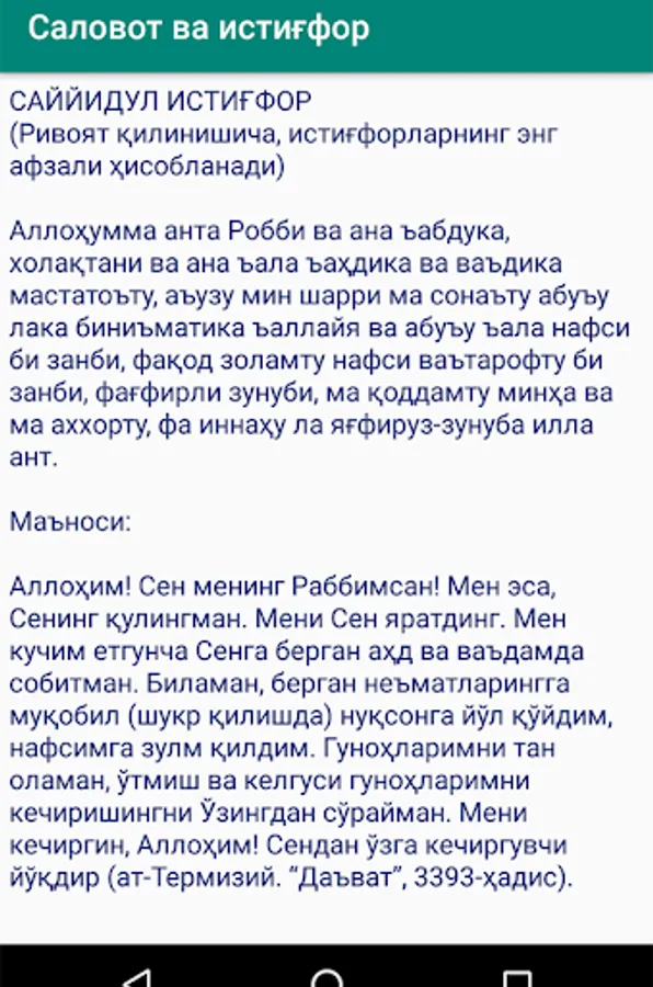 Zekrlar keying has been created. Duolar, Salovotlar, Istiғflar. Namoz ўқish