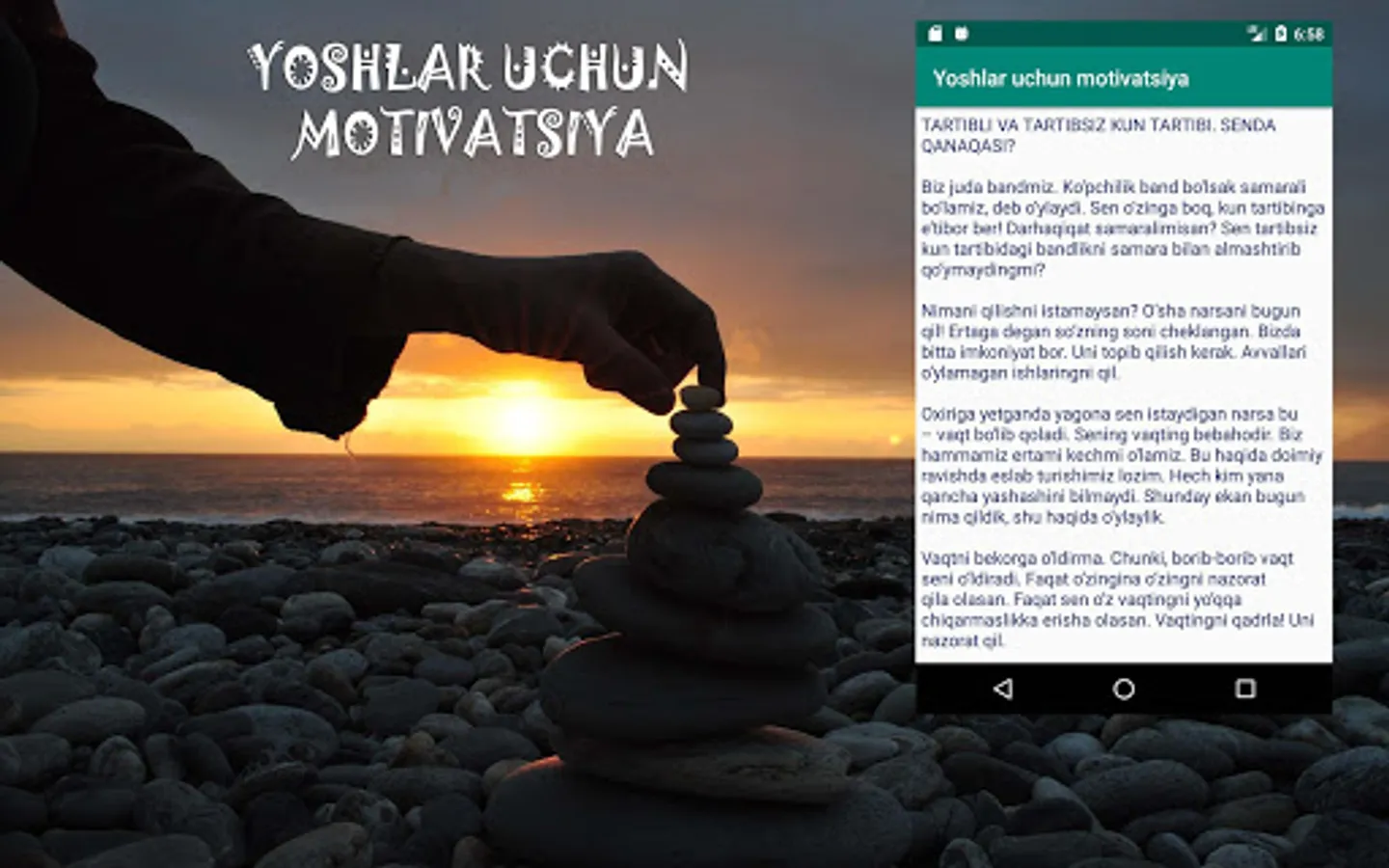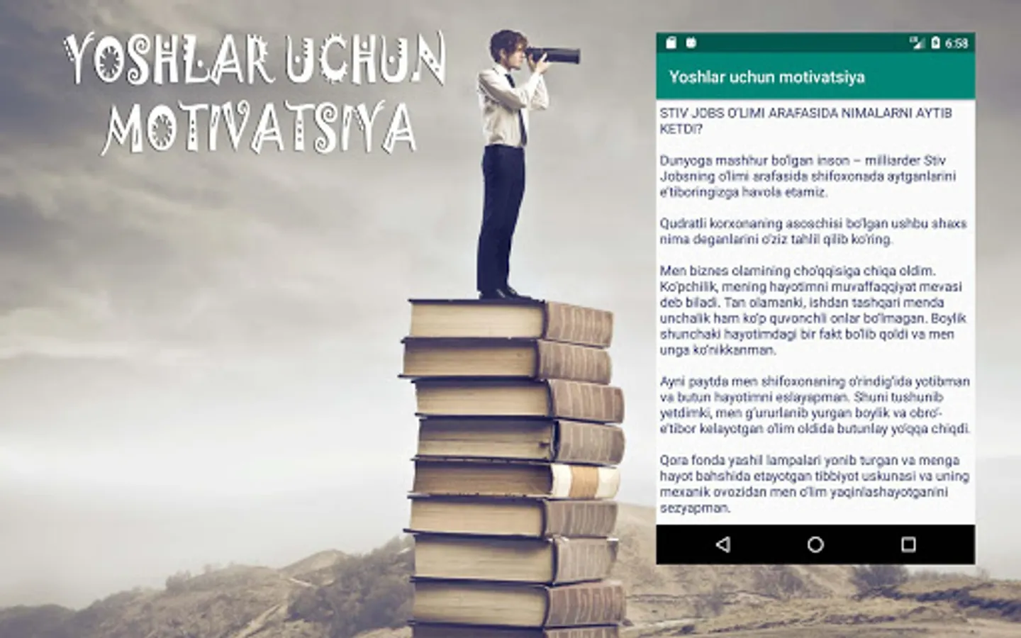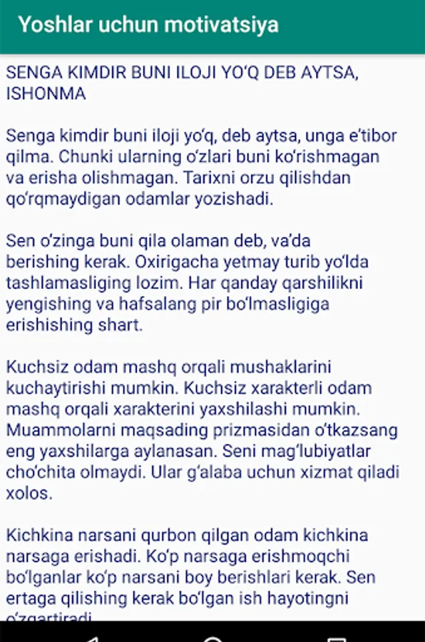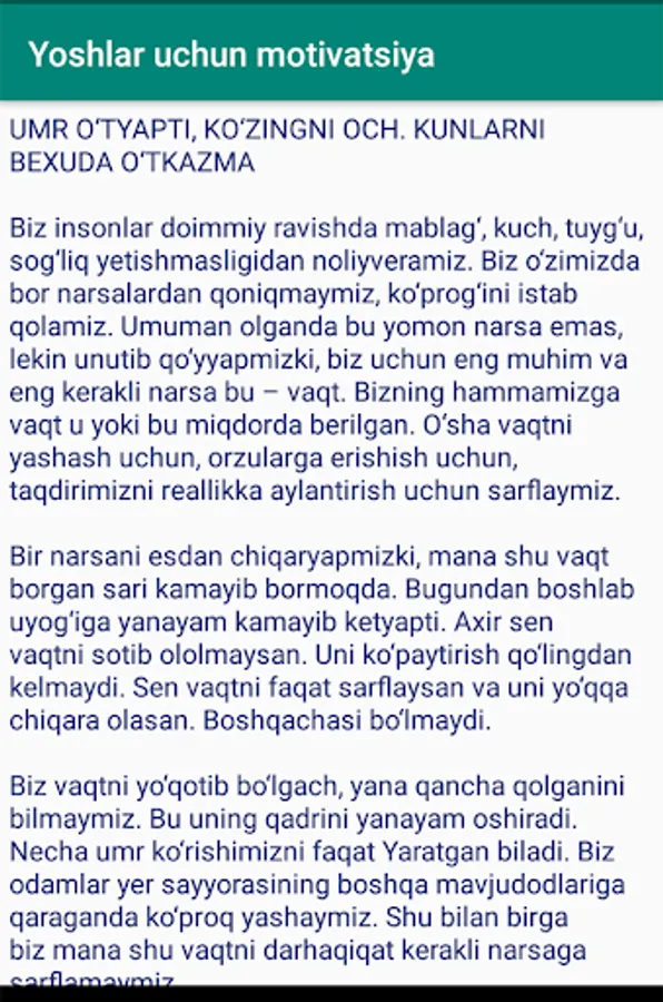 Yoshlarni xatti-hatakatga undovchi juda kuchli ilova. Bu dunyoda o'z yo'lini topishni istaganlar uchun.