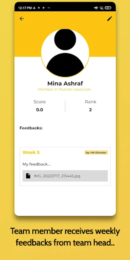 • Each user has an account that displays user’s team name, position in the team, feedbacks sent to him from others, score and rank between other users.