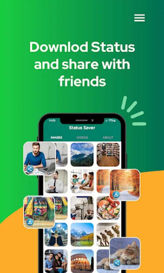 Looking for a convenient way to save those amazing WhatsApp statuses shared by your friends and family? Status Saver is the perfect solution for you! Our app allows you to download and store WhatsApp videos and images with just one click, preserving the original HD quality. Say goodbye to the hassle of asking your friends to send you their statuses or searching for ways to save them manually!