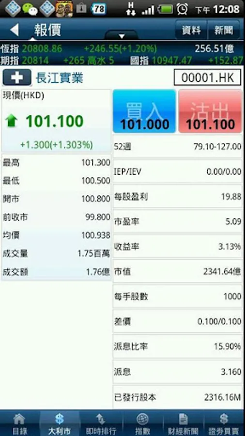 -股價圖表,可橫直向顯示,及選擇多個時段