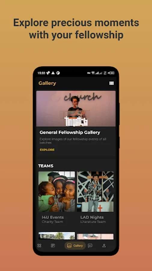 Capture precious moments with your fellowship through the Events & Gallery feature. Relive the memories anytime and connect with like-minded individuals within the community. Seamlessly support fellowship contributions with TeleBirr and Fellowship Bank accounts, allowing you to conveniently give back and make a difference.