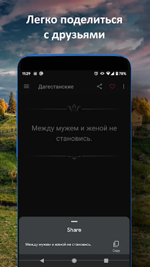 ★ Ability to share via SMS, VKontakte, WhatsApp and any other sposabami