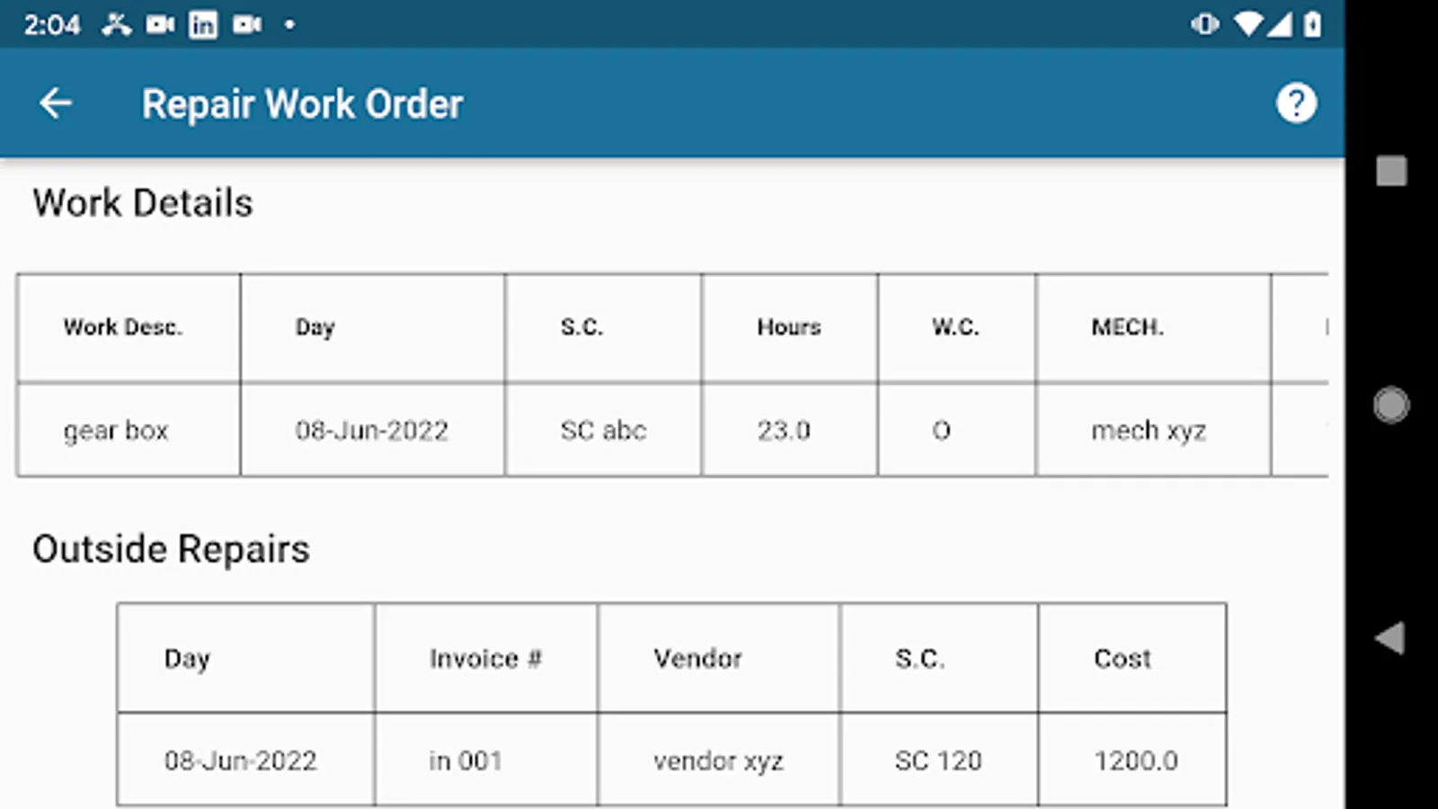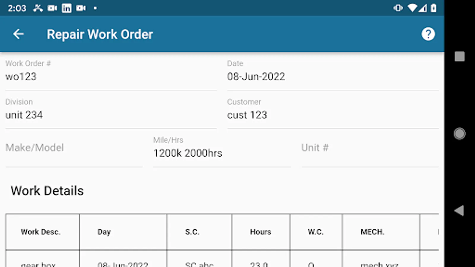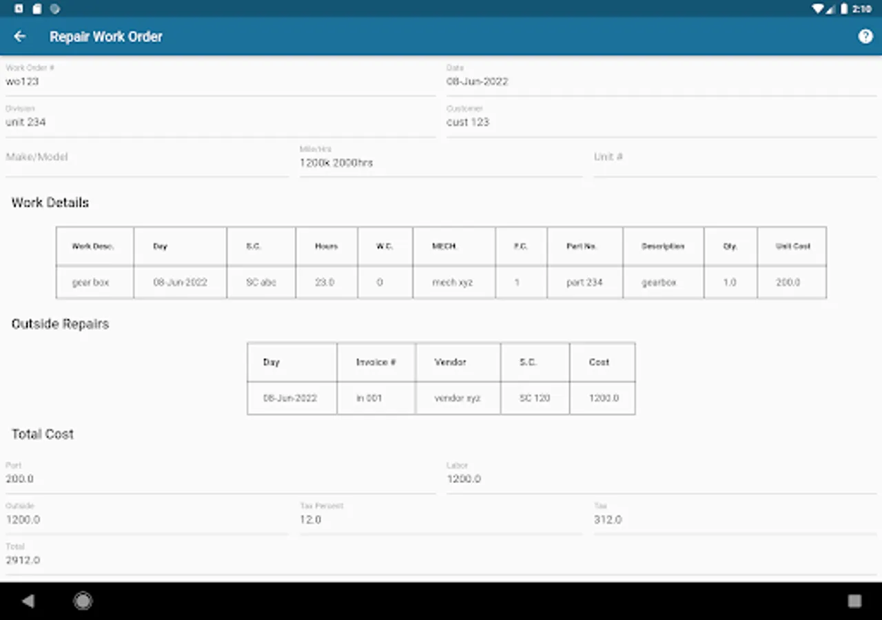 This App is the mechanic's tool to view which vehicles are due for servicing, write up work orders, and view and clear DTCs directly from a tablet.