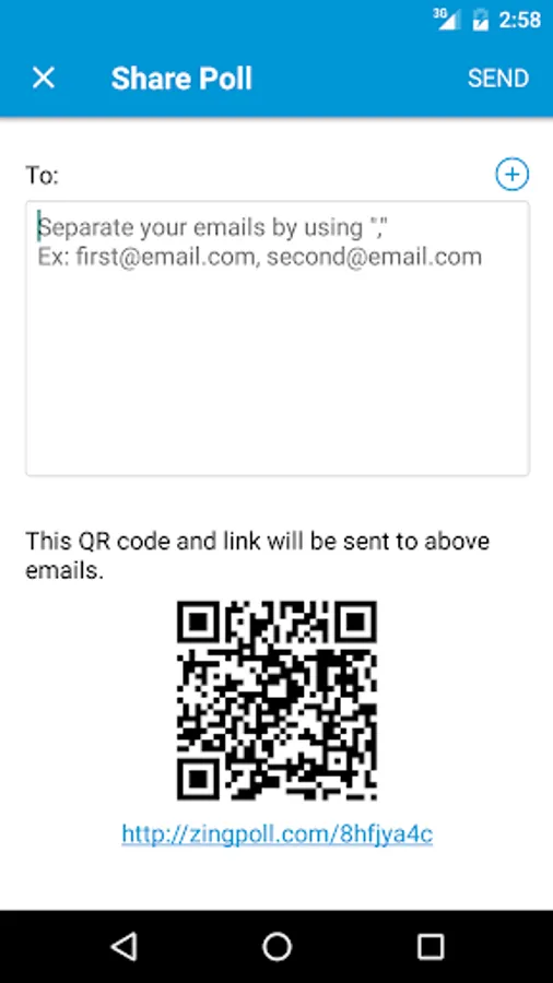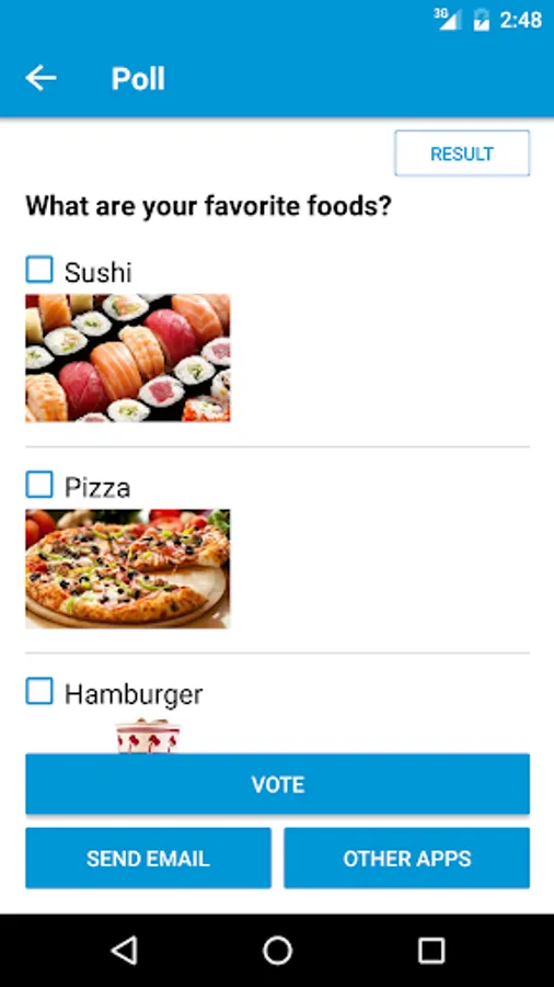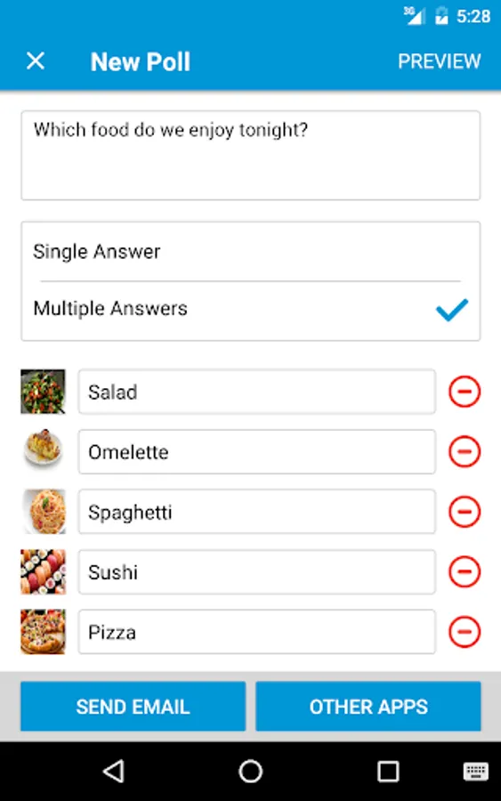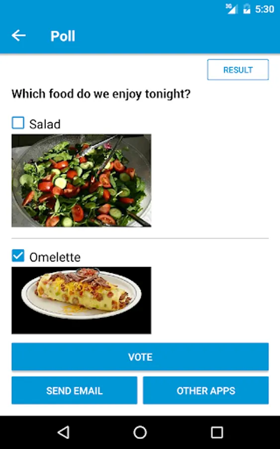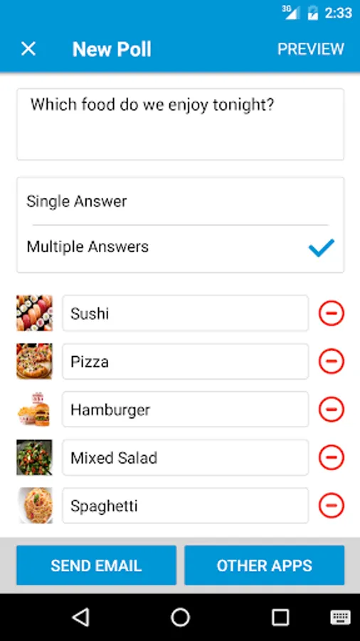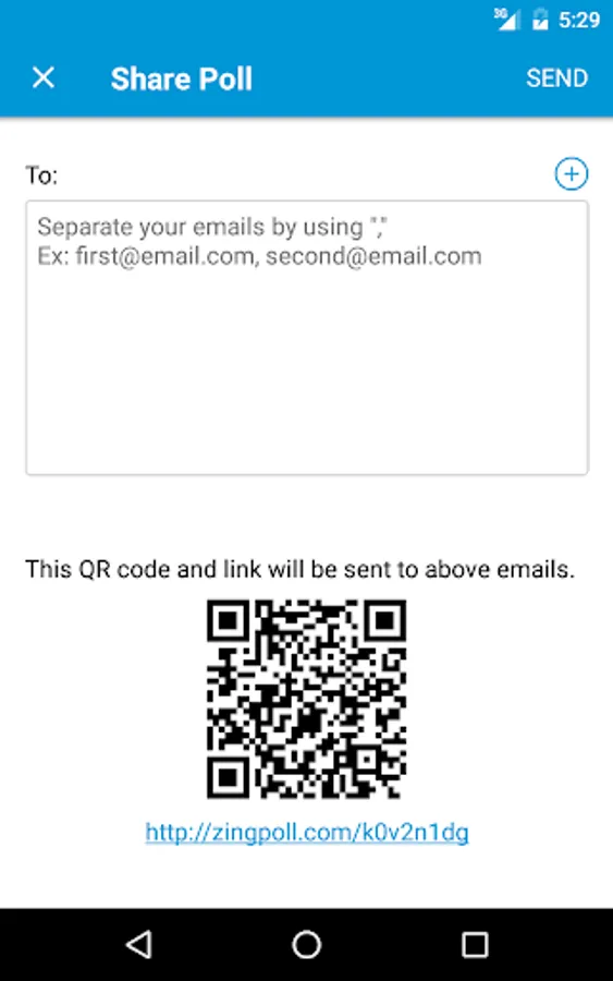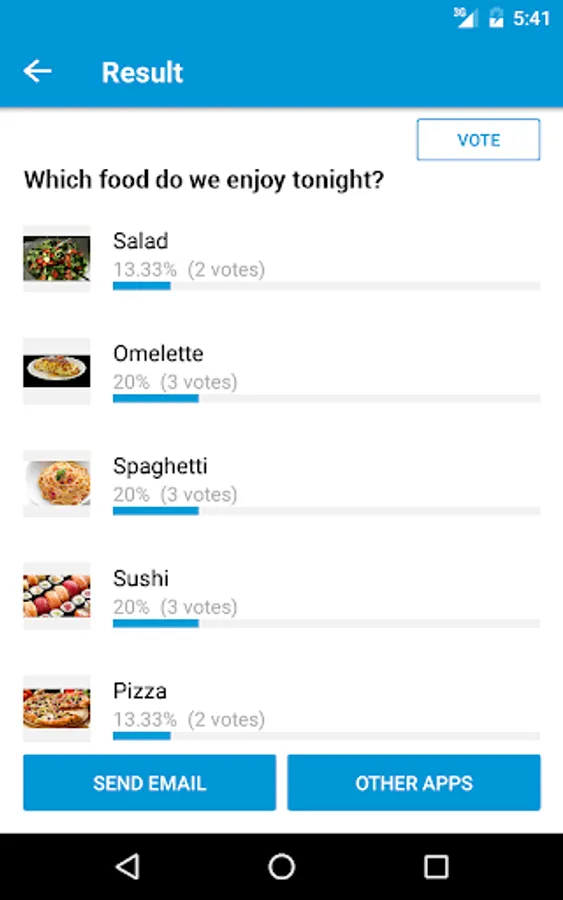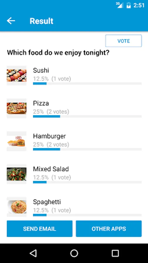 - Share polls with your friends via email or other apps (Facebook, SMS,...).